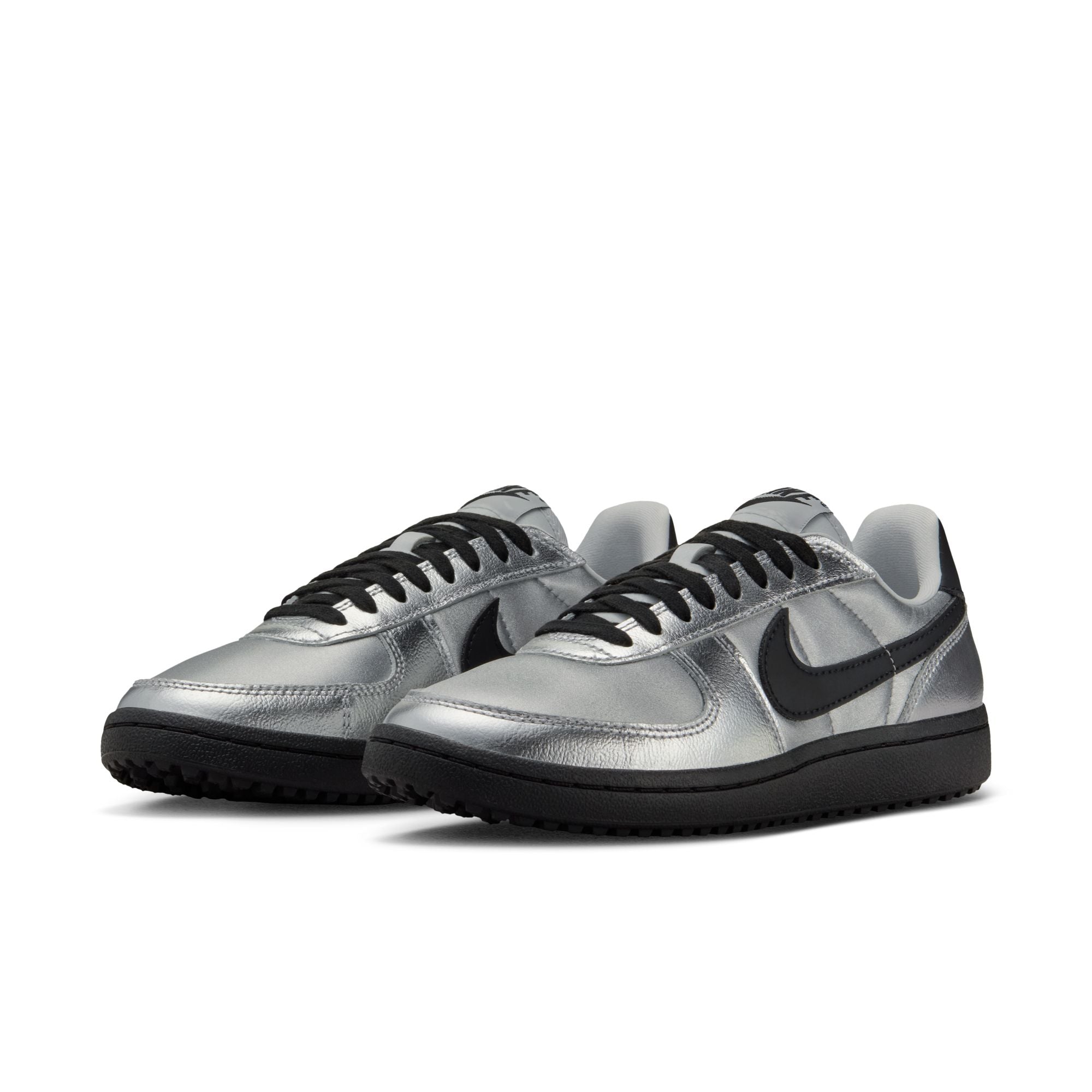 The Field General returns from its gritty football roots to shake up the sneaker scene. It pairs a metallic finish with a nubby Waffle sole—creating that vintage gridiron look. Women's Nike Field General Metallic Silver/Black HQ7397-001