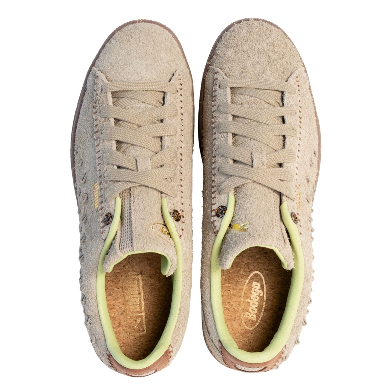 Designed with soft detailing, the Puma x Bodega Suede reimagines Puma’s iconic Formstrip with a unique lace-up look. Includes a lace kit guide to easily customize your style, your way. Puma x Bodega Suede Iced Coffee-Toasted-Teak 40412702 This product is considered a Quickstrike (QS). All QS, limited edition, and brand