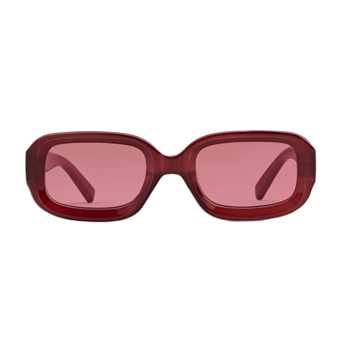 Signature Szade ; more chunky equals more funky, meet our soho frame. Part oval sunglass, part rectangular sunglass, this circa 60's vintage inspired silhouette is the perfect statement piece to level up your look. Redefine your personal style with this bold frame in our most loved, wild cherry / burgundy sunglass fram