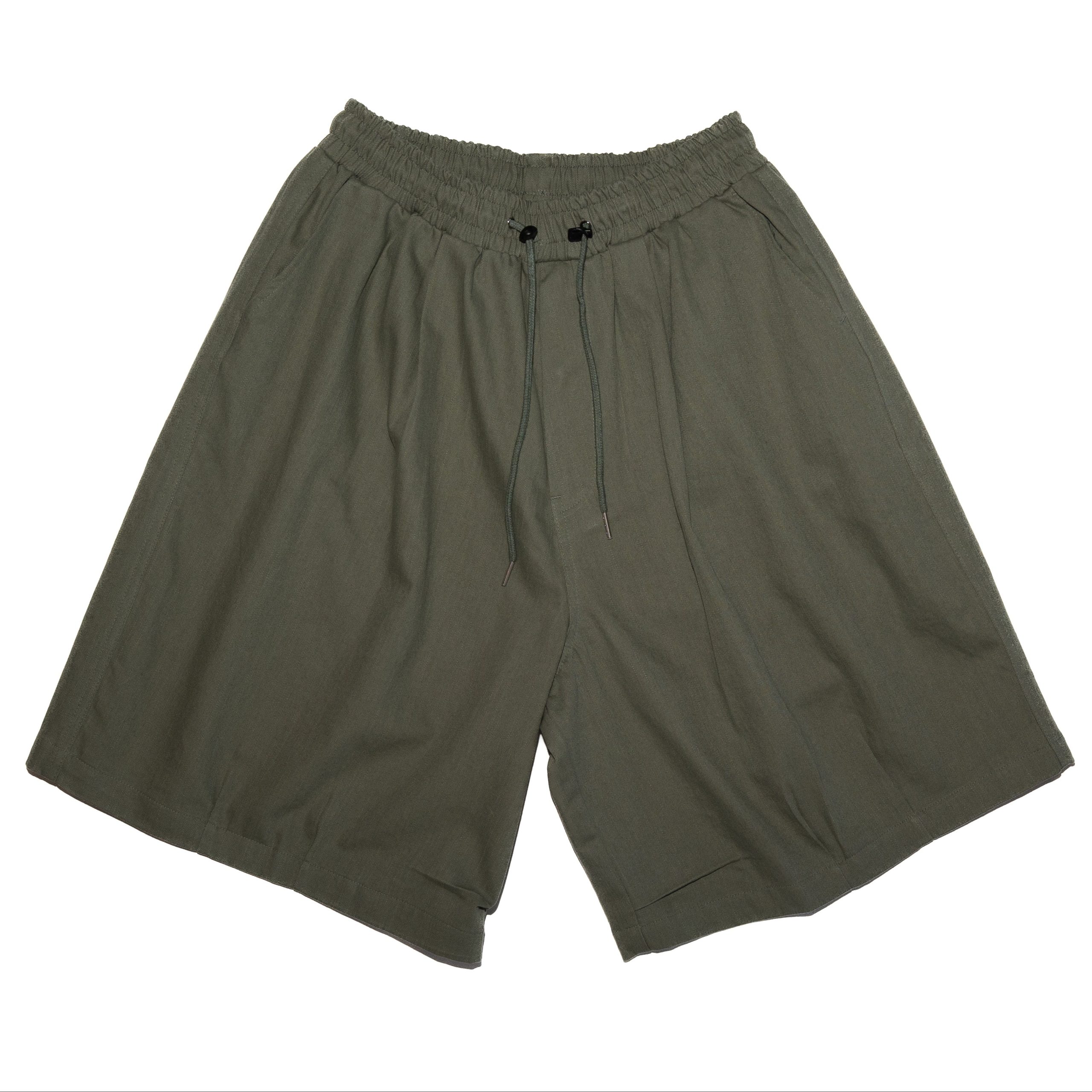 Estudio Niksen's Stopper Balloon Bermudas feature pleat details at the front for styling. Wide fit. Drawstrings and elastic band at waist. Stopper Balloon Bermudas Khaki 100% Cotton Made in Seoul CORE-7004-250 Size Chart: Waist: 13.5in to 21.5in (US26 to US40 approx.) Length: 22.5in Hem: 16in