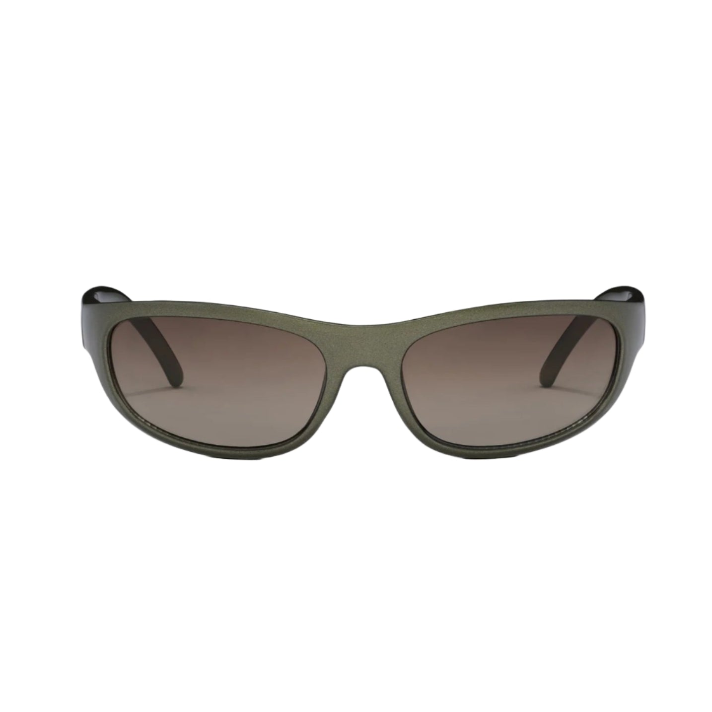 Meet traffic, a classic, late 90s minimalist wrap frame. Hot enough to stop traffic but sporty enough to speed through it and get where you're going. Eye size 60mm Bridge width 17mm Temple length 135mm Eye depth 35mm Regular fit Blocks UVA/UVB SZDC02TRF